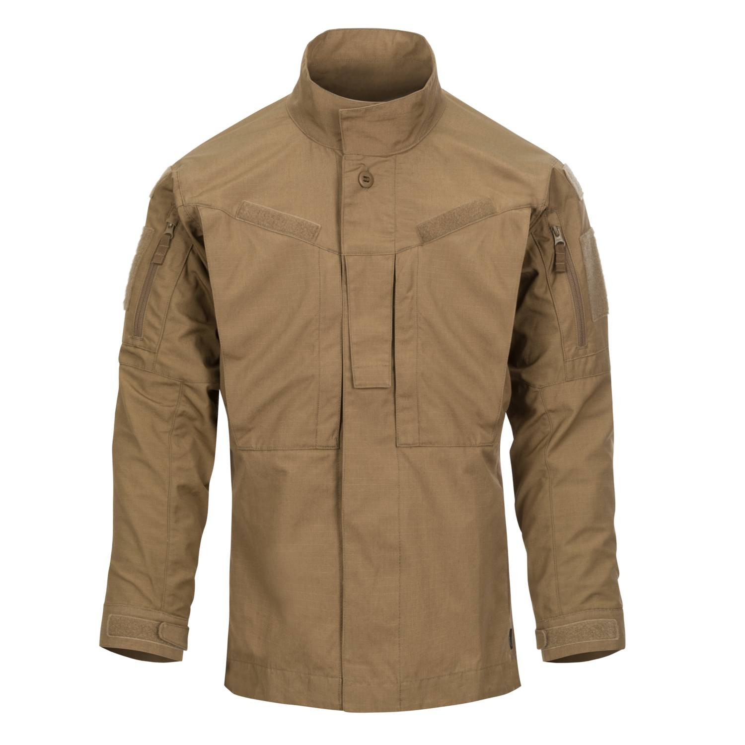 Bluza MBDU to część zaawansowanego munduru polowego Modern Battle Dress Uniform. Mundur wykonany został z najwyższej klasy materiałów, których odpowiedni dobór zapewnia nie tylko jego wysoką wytrzymałość, ale przede wszystkim pełną swobodę ruchów, tak potrzebną na współczesnym polu walki. Bluza ma profilowany, dopasowany krój z bocznymi wstawkami z tkaniny VersaStretch®. Klasyczny kołnierzyk można postawić, a następnie zapiąć rzepami. Na wysokości klatki piersiowej znajdują się dwie zapinane na zamek kieszenie, nad którymi umieszczone zostały miękkie panele na naszywki z rzepem. Dodatkowo centralnie z przodu znajduje się pagon na stopień wojskowy. Pod pachami umieszczone zostały panele z siatki poprawiające oddychalność. Na ramionach znajdują się kieszenie zapinane na zamek, wewnątrz których wszyte zostały niewielkie pętle umożliwiające dowiązanie przenoszonego wyposażenia. Na ramionach znajdują się duże panele rzepa na naszywki oraz mniejsze panele nad nimi, przeznaczone na flagę lub oznaczenie IFF.
