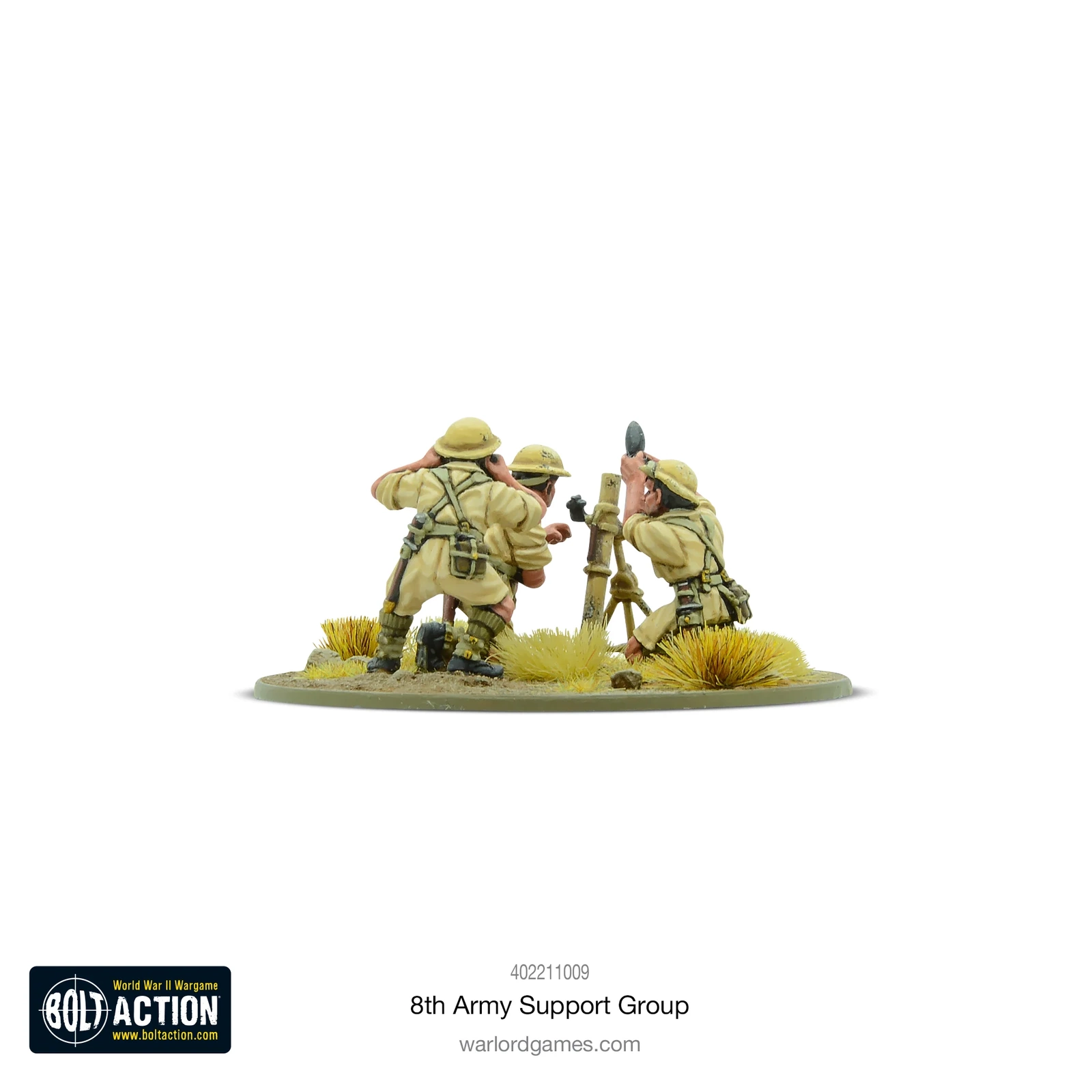 1 x British 8th Army Medium Mortar Team: Zespół obsługujący 3-calowy moździerz, zdolny do dostarczania wsparcia ogniowego z odległości do 3,000 jardów, w zależności od użytego pocisku. Obsługiwany przez 3 żołnierzy, moździerz często transportowano w Uniwersalnym Pojeździe "Bren" (Bren Carrier), co ułatwiało jego mobilność na polu bitwy.
