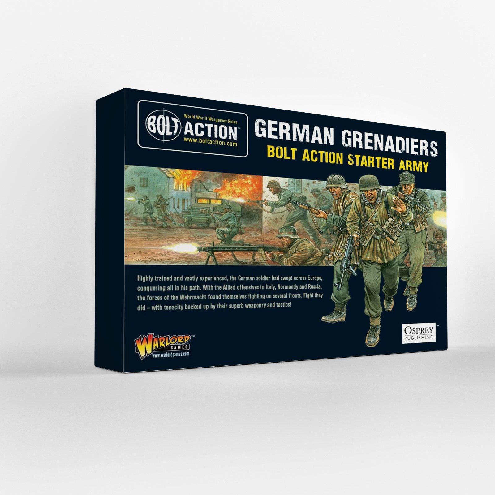 Zestaw Starter Armia Niemieckich Grenadierów to idealny punkt wyjścia dla każdego, kto chce zbudować solidną i wszechstronną armię do gry w Bolt Action. Ten zestaw zawiera wszystko, czego potrzebujesz, aby stworzyć imponującą siłę militarystyczną, gotową do działań na polu bitwy.