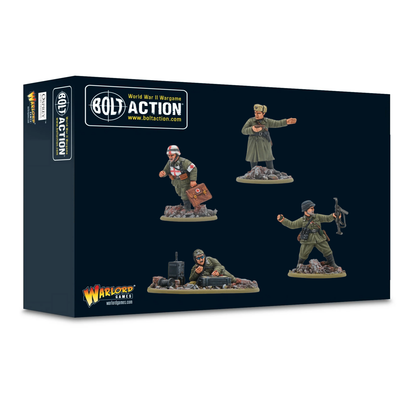W grze Bolt Action, dowódcy, medycy i łącznicy są niezbędni do zarządzania jednostkami i zapewniania im wsparcia ogniowego oraz medycznego. Zestaw ten zawiera nie tylko dwóch oficerów, ale również medyka i operatora radiowego, co pozwala na pełne wsparcie taktyczne dla Twojej armii.