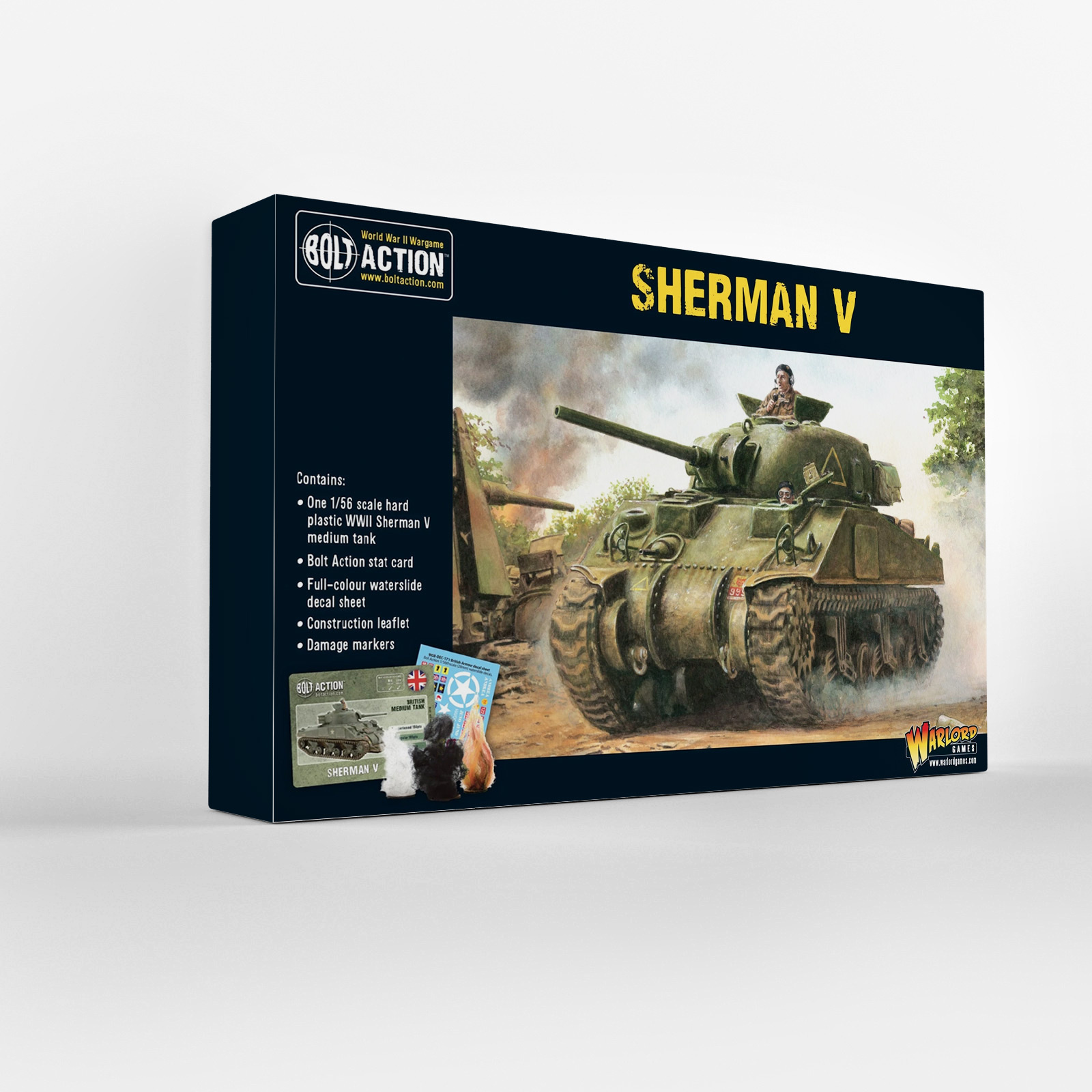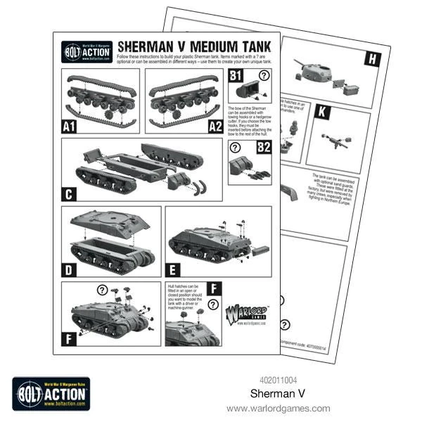 Czy model jest kompatybilny z innymi zestawami Bolt Action? Tak, model Sherman V jest kompatybilny z innymi modelami i zestawami dostępnymi w systemie gry Bolt Action.