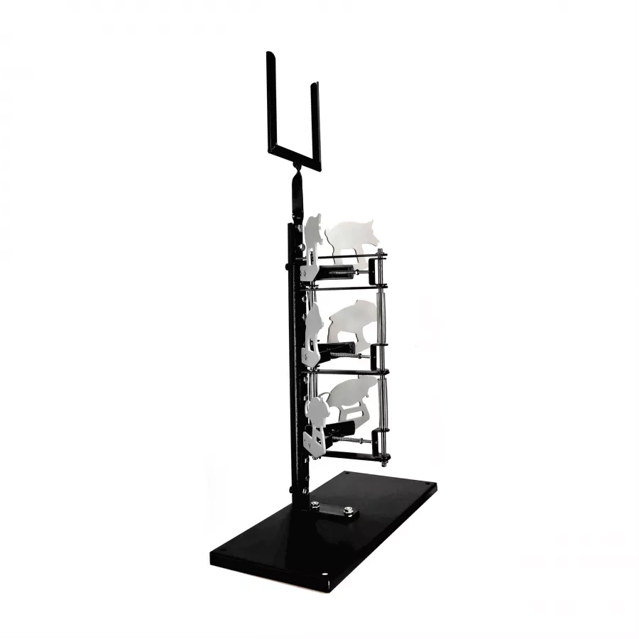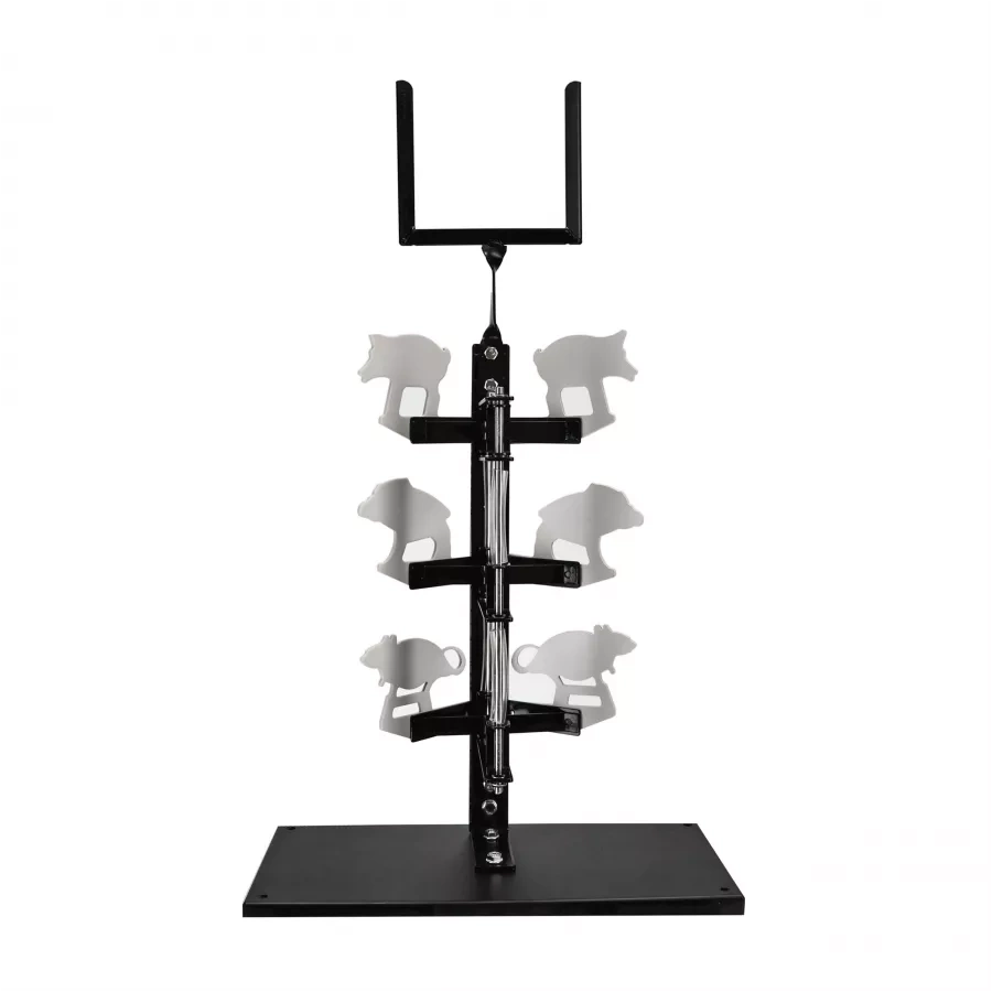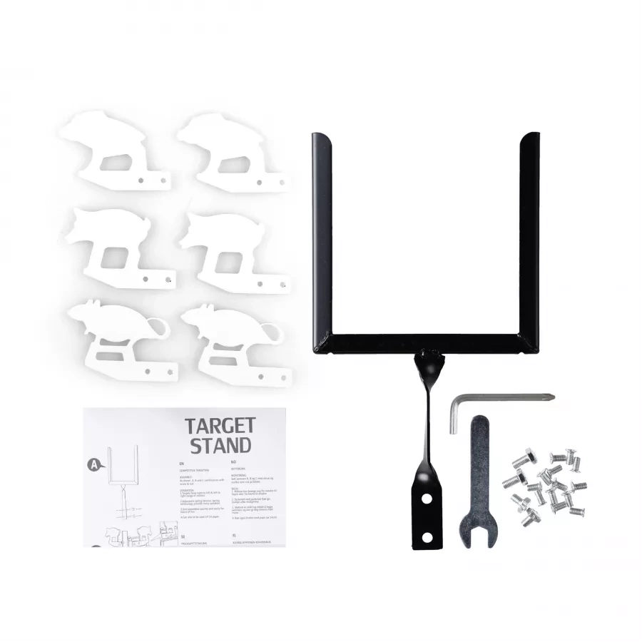 Cel wiatrówkowy RazorGun wyróżnia się składaną konstrukcją, dzięki czemu można go łatwo transportować i ustawić w dowolnym miejscu. Szeroka podstawa zapewnia stabilność nawet na nierównym terenie, co czyni go idealnym rozwiązaniem do plenerowych treningów.
