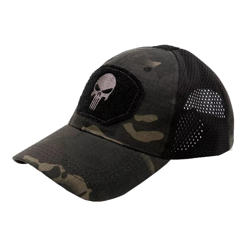 Czapka Taktyczna MESH Black Camo Punisher OUTLANDRA – czapka wojskowa z siatką mesh i rzepami