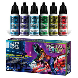 Przezroczyste filtry akrylowe z metalicznym wykończeniem, które pozwalają na modyfikację i metalizację koloru, który kryją. Nakładaj na inne płaskie, metaliczne kolory lub kolory z przesunięciem kolorystycznym . Mieszane razem lub nakładane kolejno tworzą nowe kombinacje. Błyszczące metaliczne wykończenie. Dotyczy pędzla lub aerografu.