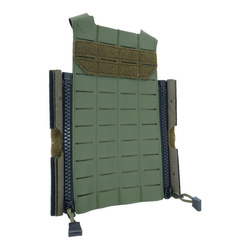 Niemal całą jego powierzchnię pokrywa wycięty laserowo system MOLLE, co znacznie rozszerza możliwości modułowe kamizelki Kyris.