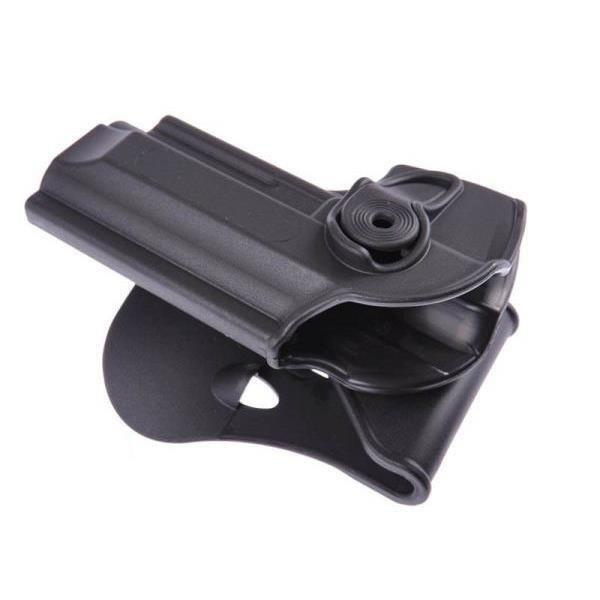 Dzięki innowacyjnemu systemowi łączenia kabury z płetwą użytkownik ma możliwość regulowania kąta nachylenia kabury w zakresie 360º. Ergonomiczna płetwa umożliwia mocowanie kabury do paska o szerokości 45mm.