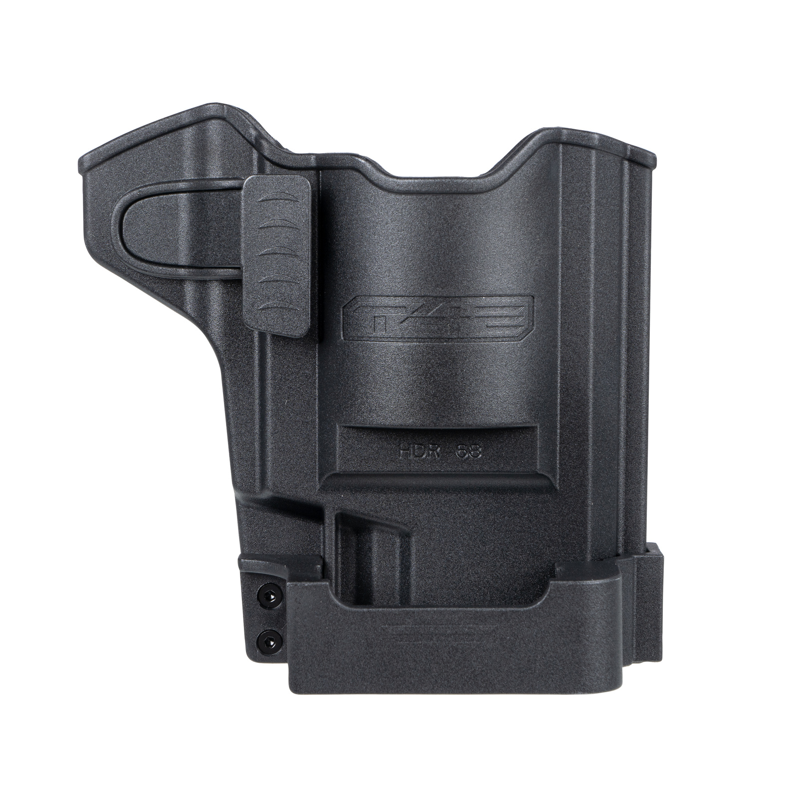 Kabura Umarex T4E do HDR 68 pozwala na bezpieczne przenoszenie rewolweru na pasie wraz z zapasowym magazynkiem. Kabura dla osób praworęcznych.