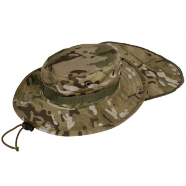 Kapelusz typu wojskowego z osłoną szyi  doskonale chroni przed promieniami słońca.