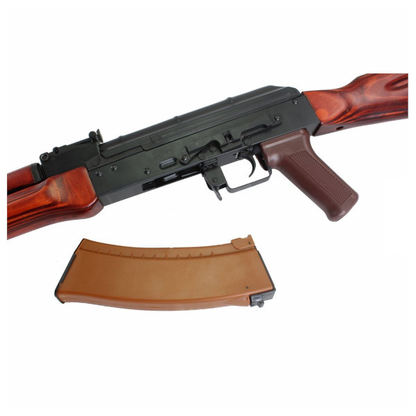 LCK-74 to klasyczna replika rosyjskiego karabinu szturmowego AK-74. Bardzo ładny stalowy korpus, podobnie jak inne części, są precyzyjnie spawane i montowane, aby zapewnić maksymalną wytrzymałość i trwałość. Broń ma prawdziwy wygląd i wrażenie prawdziwego rosyjskiego AK.
