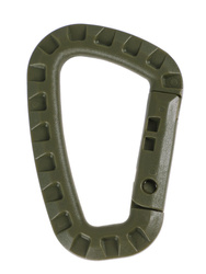 Karabinek został wykonany z wytrzymałego polimeru, co zapewnia jego lekkość i odporność na ścieranie oraz chemikalia.