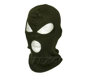 Lekka balaklava z otworami na oczy i usta wykonana z bawełny.