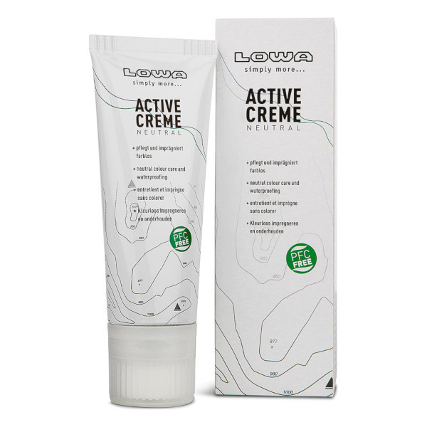 Lowa Active Creme została opracowana specjalnie z myślą o intensywnie eksploatowanym obuwiu. Zmiękcza skórę, zapobiega jej pękaniu, odświeża wygląd i jednocześnie nie zaburza oddychalności membran typu GORE-TEX®. Dzięki bezbarwnej formule może być stosowana do obuwia w każdym kolorze.