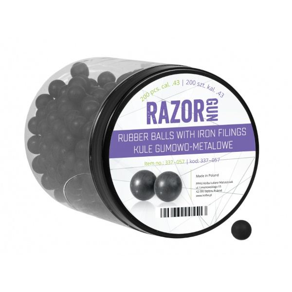 Kule gumowo-metalowe RazorGun 43 kal. .43 / 200 szt. to ciężka amunicja treningowa do markerów RAM.