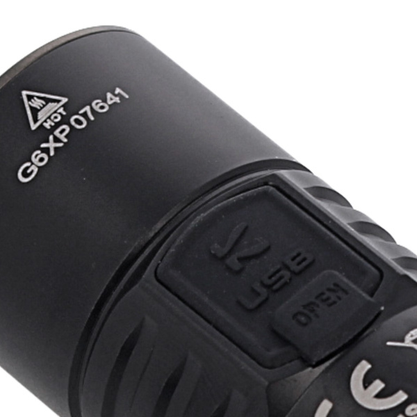 Elektronika - sercem tej latarki jest wysokowydajna dioda CREE XHP70.2, jedna z najmocniejszych obecnie diód LED na rynku (Power 29W, Efficacy 181 lm/W, Max Output 4292 lm). W trybie Turbo może ona zaświecić z jasnością 4000 lumenów! Oczywiście, aby osiągnąć taką wydajność potrzebne jest mocne i wydajne źródło zasilania. W tym przypadku jest to akumulator 21700 o pojemności 5000 mAh. Latarkę wyposażono w port USB, dzięki czemu możemy ją szybko naładować przy wykorzystaniu choćby zasilacza od telefonu i kabla Micro-USB (w komplecie).