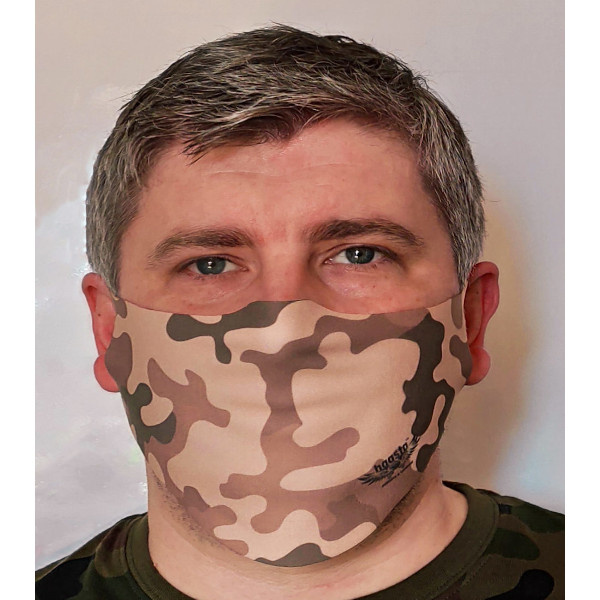 Maseczka wielokrotnego użytku, ochronna z grafiką na całej powierzchni. Maseczka dopasowuje się do kształtu twarzy, jest wygodna w noszeniu, nie powoduje otarć oraz co najważniejsze nie sprawia kłopotów z oddychaniem. Maseczka zapewnia swobodny przepływ powietrza, co ogranicza potliwość i gromadzenie wilgoci wewnątrz maski przy zachowaniu odpowiedniej izolacji od czynników zewnętrznych. Cała konstrukcja maseczki jest wykonywana z jednego kawałka tkaniny metodą cięcia laserowego. Dzięki wykorzystania takiej technologii ograniczyliśmy ilość bezpośredniego kontaktu osób z produktem.