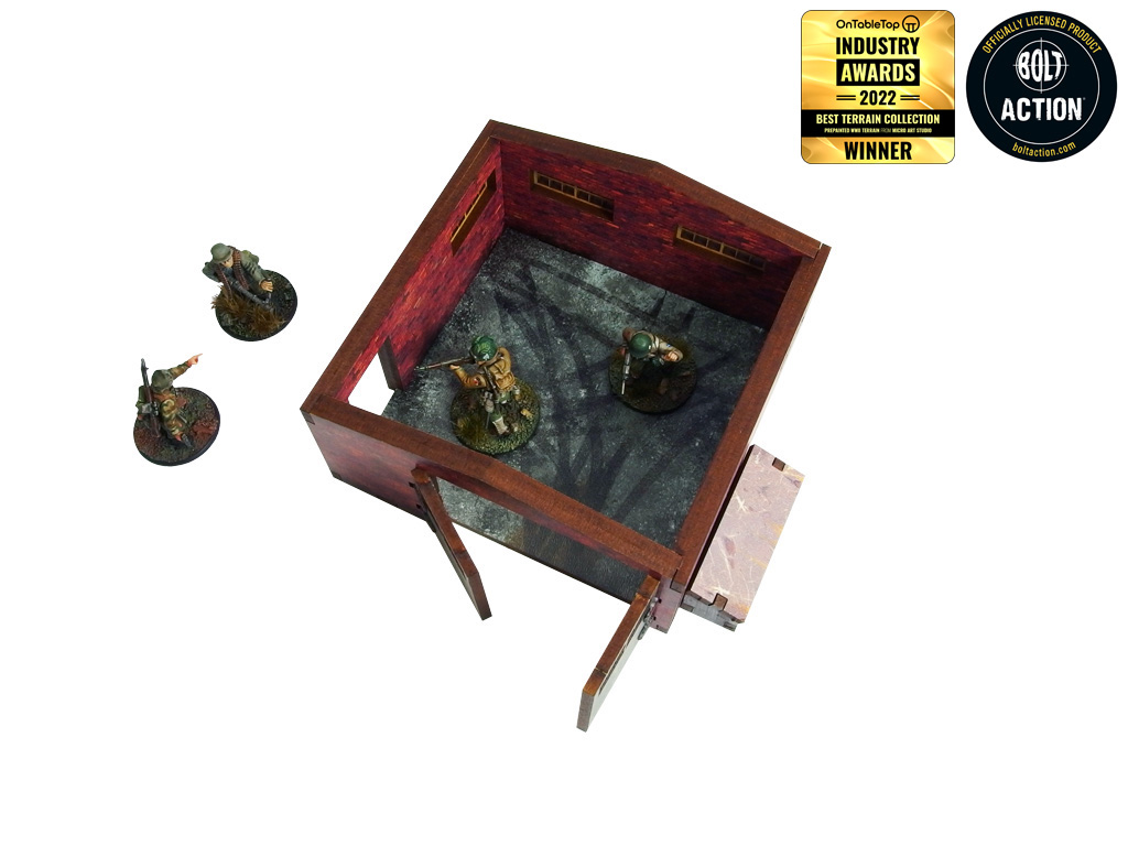 Zanurz się w realistycznym świecie II wojny światowej z naszym wielokolorowym Schronem z Dużymi Cegłami. Ten przedpomalowany budynek jednopoziomowy zapewnia dostęp do kolorowego wnętrza i posiada zdejmowany dach, oferując opcje montażu z otwartymi lub zamkniętymi drzwiami. Brama może być łatwo otwarta lub zamknięta, co dodaje realizmu podczas rozgrywki. Wnętrze zapewnia miejsce na małe pojazdy lub średnie oddziały piechoty.
