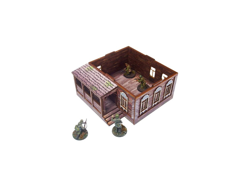 MICRO ART - WW2 Ostfront Village Doma to zestaw dwóch wstępnie malowanych (UV-printed) budynków w skali 28-30mm (1:56), idealnych do gier bitewnych osadzonych w realiach II wojny światowej, takich jak Bolt Action. Domy odzwierciedlają charakterystyczną architekturę Wschodniego Frontu, oferując kolorowe wnętrza, zdejmowane dachy i przezroczyste okna z akrylu. Każdy budynek jest wystarczająco duży, aby pomieścić cały oddział piechoty, co pozwala na realistyczne odwzorowanie działań taktycznych na stole do gry.