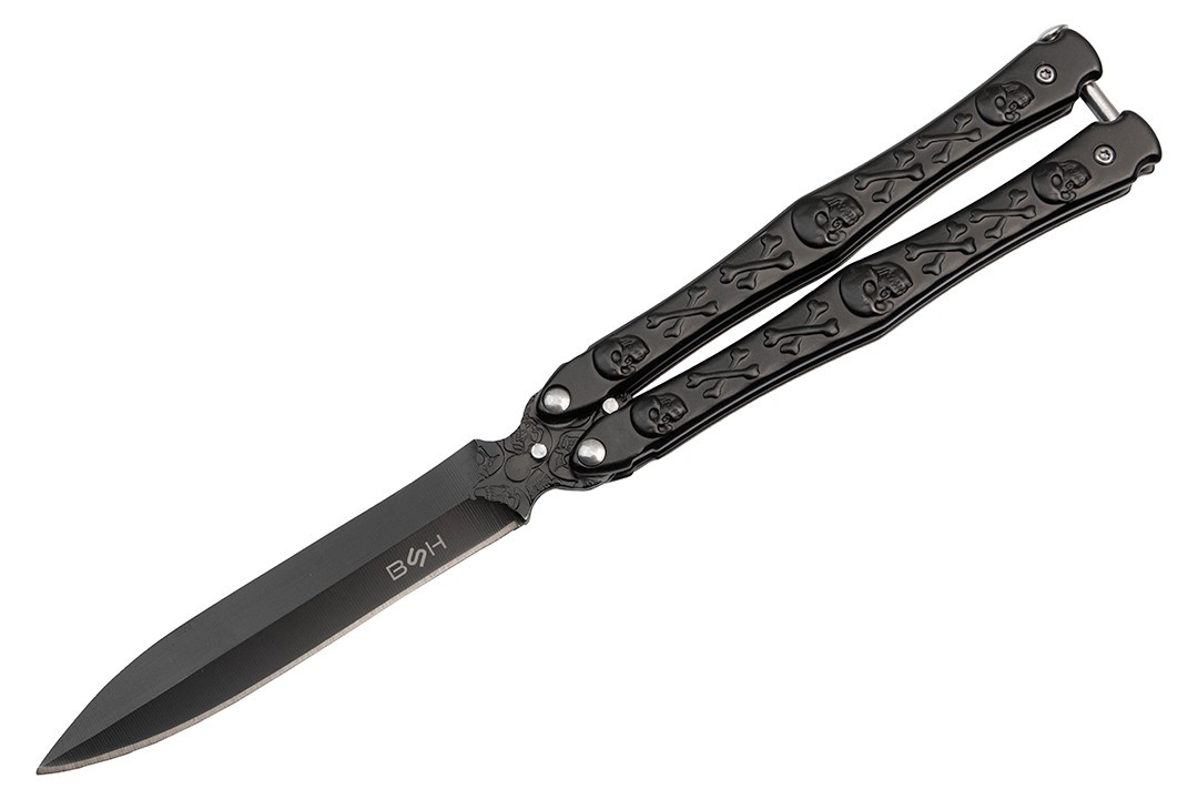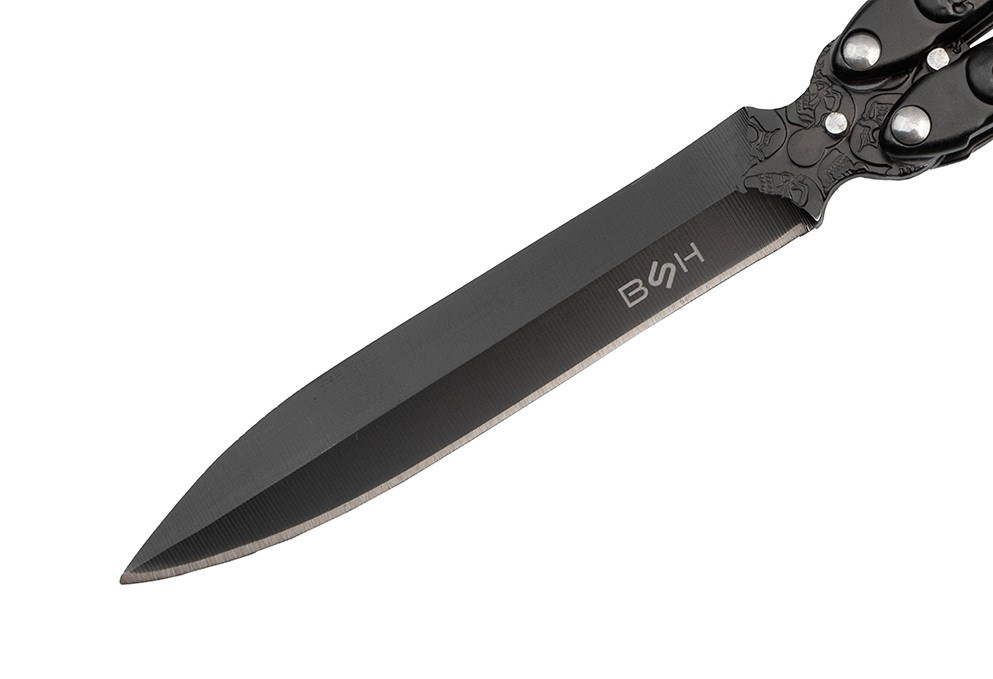 Czarny nóż motylkowy od marki BSH ADVENTURE to rewelacyjna broń do wykonywania efektownych trików i akrobacji.
