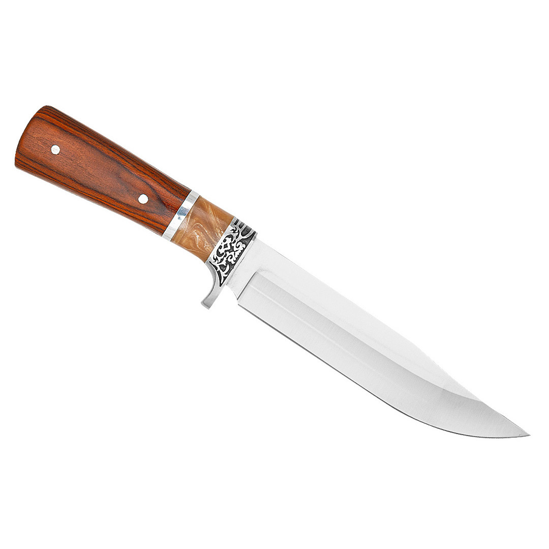 BSH Adventure to klasyczny nóż z głownią stałą, który łączy wytrzymałość, tradycyjny design i funkcjonalność, niezbędną podczas polowania, biwaku czy wypraw survivalowych. Wykonany z odpornej stali nierdzewnej i ozdobiony elegancką rękojeścią z drewnianymi okładzinami, będzie niezawodnym towarzyszem w terenie.