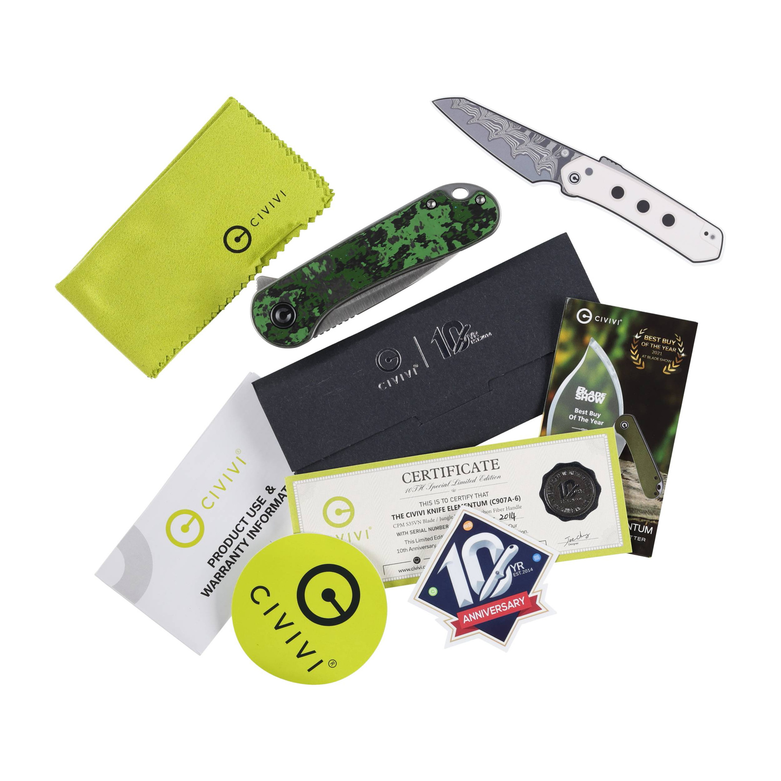 Folder Civivi Elementum pochodzi z limitowanej serii z okazji dziesięciolecia istnienia, wyprodukowane zostało jedynie 2014 sztuk tego składanego noża. Nóż został wyposażony w doskonale wyglądającą rękojeść Jungle Wear Fat Carbon.