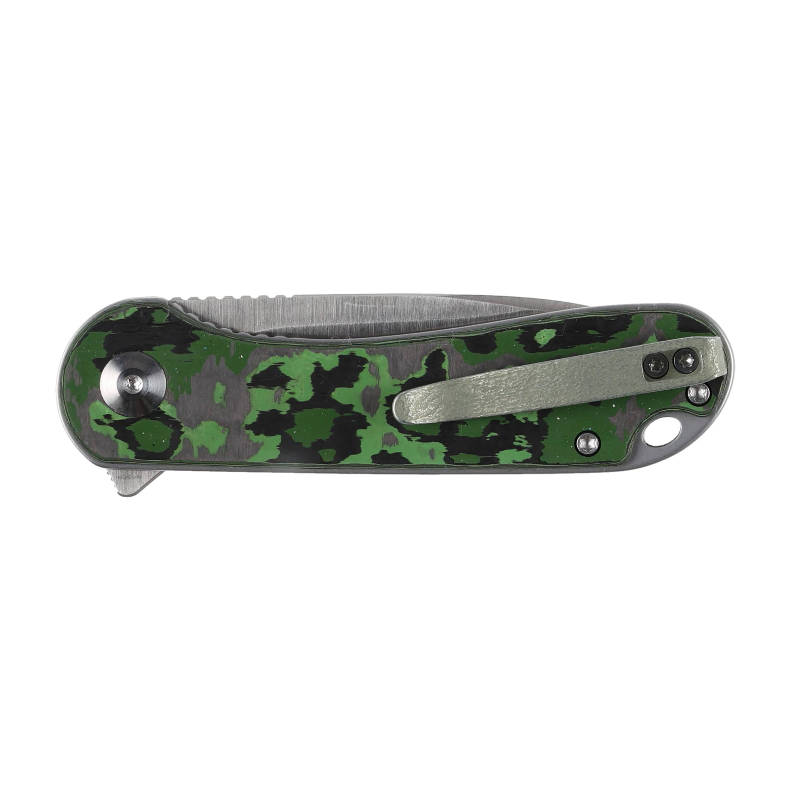 Rękojeść w nożu składanym Elementum została wyposażona w okładziny Jungle Wear Fat Carbon, które sprawiają, że folder nie jest tylko narzędziem, a staje się dziełem sztuki.