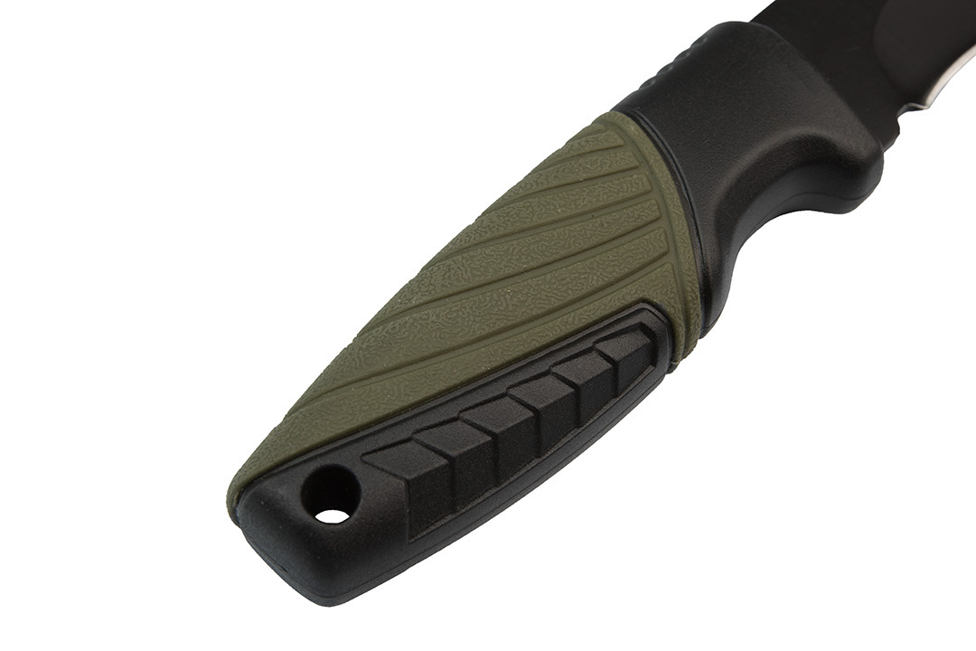 Ergonomiczna rękojeść noża została wykonana z odpornego tworzywa sztucznego z elementami gumopodobnymi, co zapewnia pewny chwyt nawet w trudnych warunkach pogodowych. Antypoślizgowe właściwości rękojeści sprawiają, że praca z nożem jest bezpieczna i komfortowa, niezależnie od zadania.