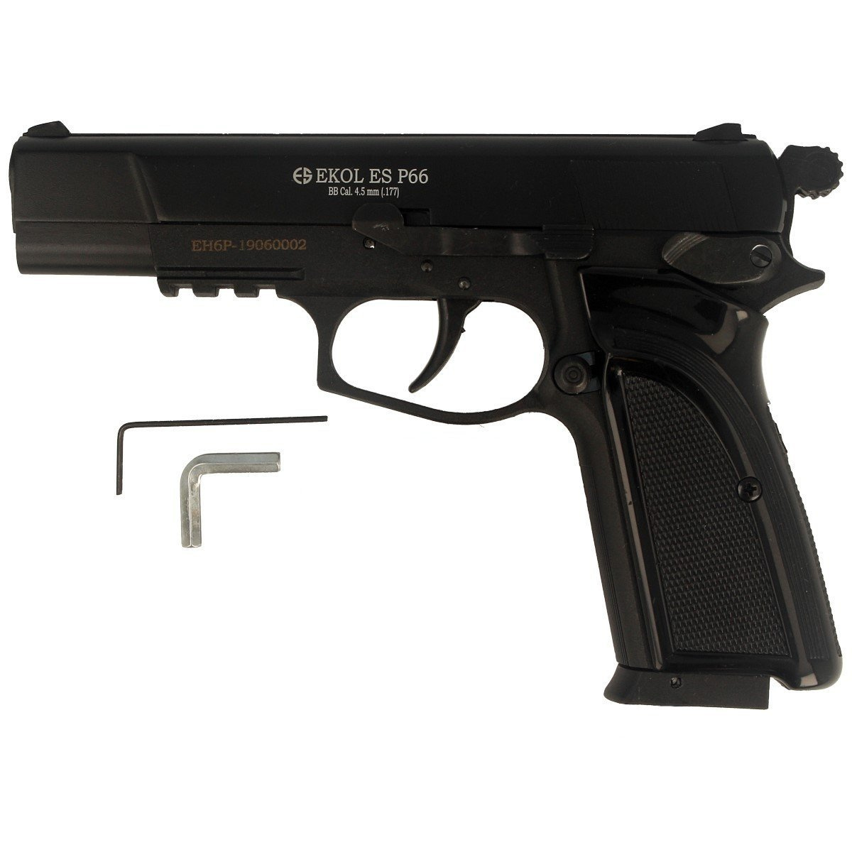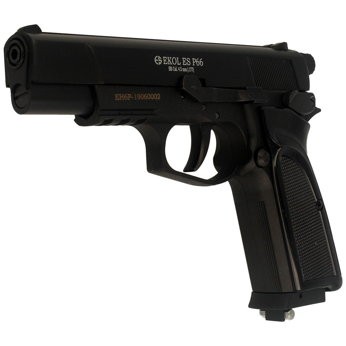 EKOL ES P66 Black to nowoczesny, samopowtarzalny pistolet pneumatyczny CO2, który konstrukcyjnie bazuje na broni sygnałowej, gazowej i alarmowej renomowanej firmy Voltran. To jedna z najmocniejszych wiatrówek CO2 na rynku, osiągająca prędkość początkową aż 150 m/s (492 fps).