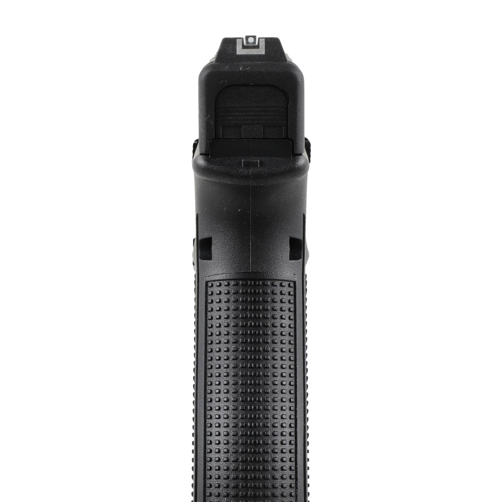 Pistolet wykorzystuje stałe przyrządy celownicze tj. muszkę z białą kropką oraz szczerbinkę z ramką. Kontrastowe oznaczenia przyspieszają zgrywanie przyrządów, pozwalają także na strzelanie przy słabym lub szczątkowym świetle. Ponadto umieszczone na zamku podcięcie MOS umożliwia montaż kolimatora w standardach Docter, Trijicon, C-More lub Leupold dzięki dołączonym do zestawu płytkom.W przedniej części szkieletu znajduje się krótka szyna montażowa Picatinny pozwalająca na wykorzystywanie dodatkowych akcesoriów strzeleckich np. laserowego wskaźnika celu lub latarki. Na zamku oraz szkielecie wiatrówki naniesiono licencjonowane oznaczenia firmy Glock, oraz numer seryjny pistoletu. Wiatrówka ma dodatkowe zabezpieczenie w postaci bezpiecznika suwakowego  (przed szyną), który blokuje działanie mechanizmu spustowego.