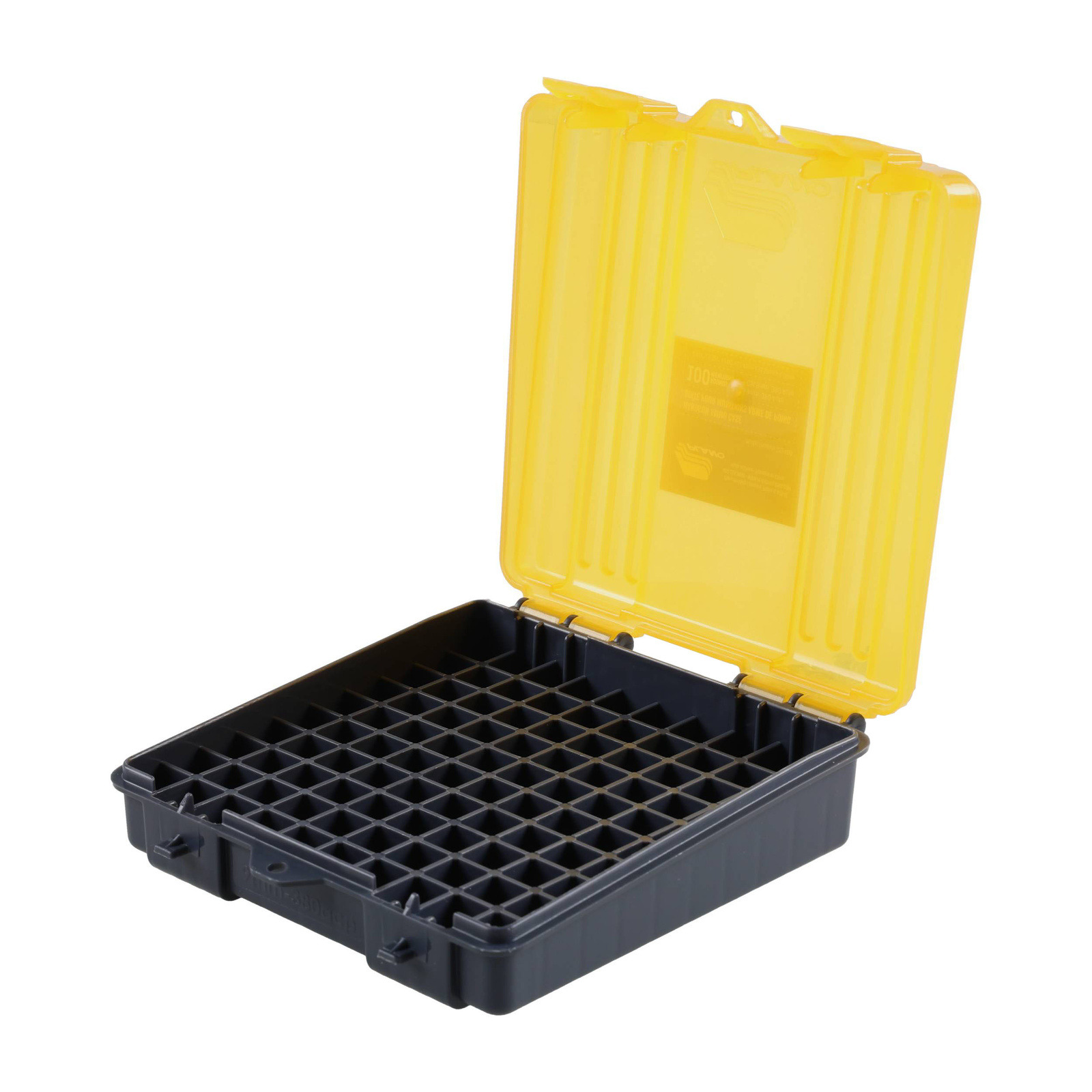 Plano Handgun 9 × 19 to praktyczne pudełko transportowe wykonane z trwałego tworzywa sztucznego, mieszczące do 100 sztuk w kalibrze 9 × 19 mm. Dzięki przemyślanej konstrukcji z indywidualnymi przegródkami każde miejsce jest odpowiednio uporządkowane, co zapobiega przesuwaniu się zawartości i ułatwia szybki dostęp.