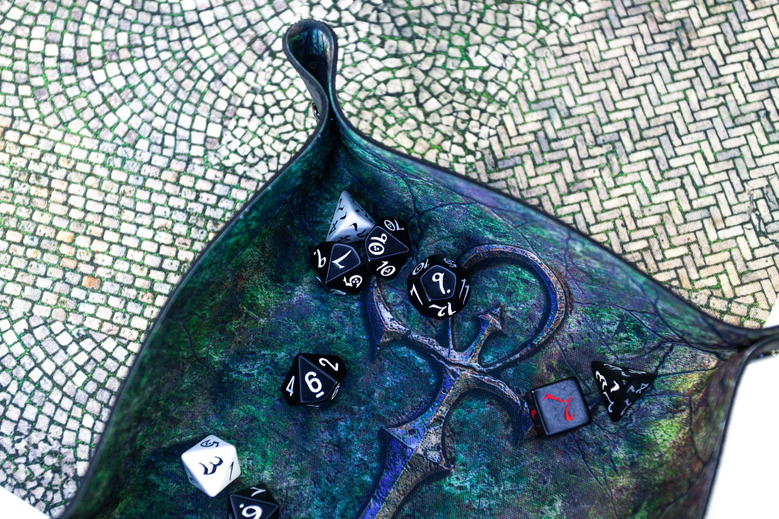 • Komfortowy rzut kostkami: Solidna konstrukcja tacki zapewnia płaską i stabilną powierzchnię do rzucania kostkami, eliminując przypadkowe przesunięcia.