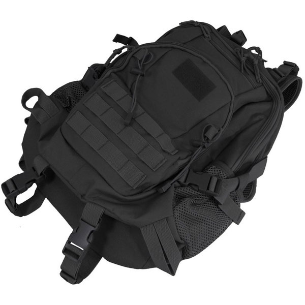 Duża kieszeń z przodu zamykana zamkiem błyskawicznym. Na froncie znajduje się rzep identyfikacyjny na różnego rodzaju naszywki, flagi i inne patche oraz 3 rzędy taśm montażowych. Po bokach kieszeni naszyto dodatkowe pętle z linkami bungee, dzięki którym mamy możliwość przytroczyć dodatkowy ekwipunek taki jak karimata, kije trekingowe, siekierkę itp. Kieszeń pomieści wszystkie niezbędne akcesoria do komputera takie jak zasilacz, myszka, dysk przenośny itp.