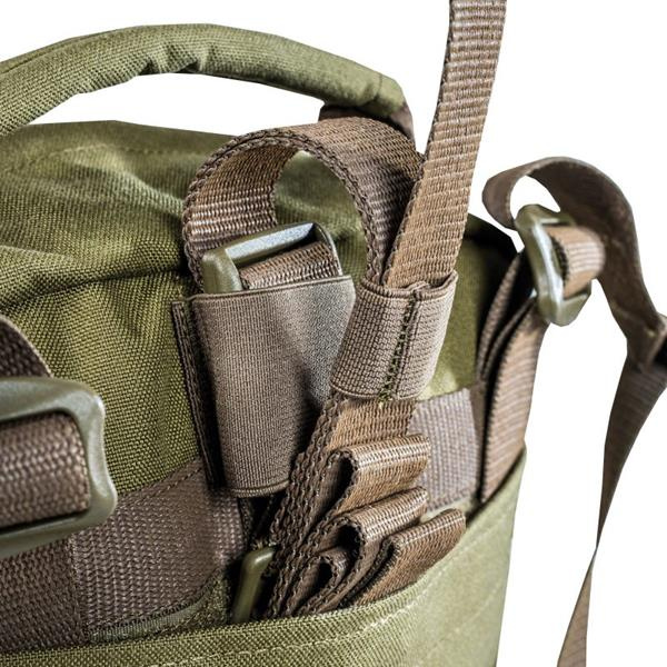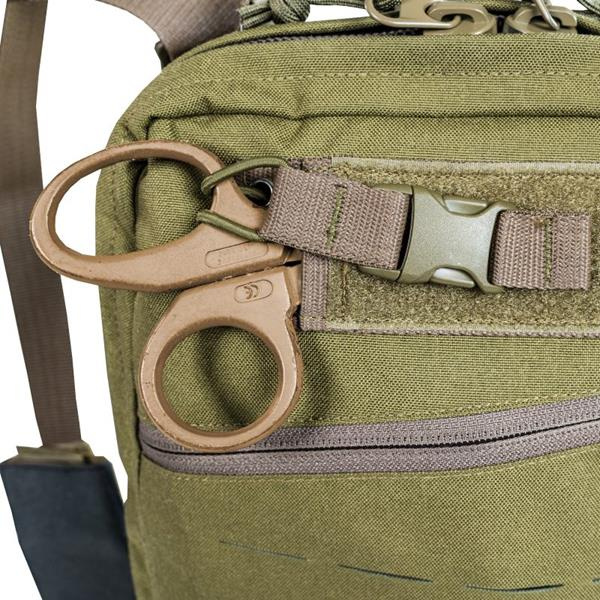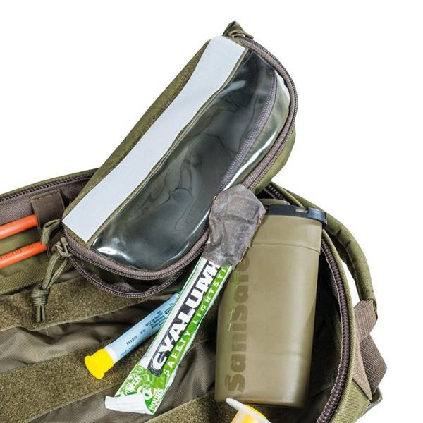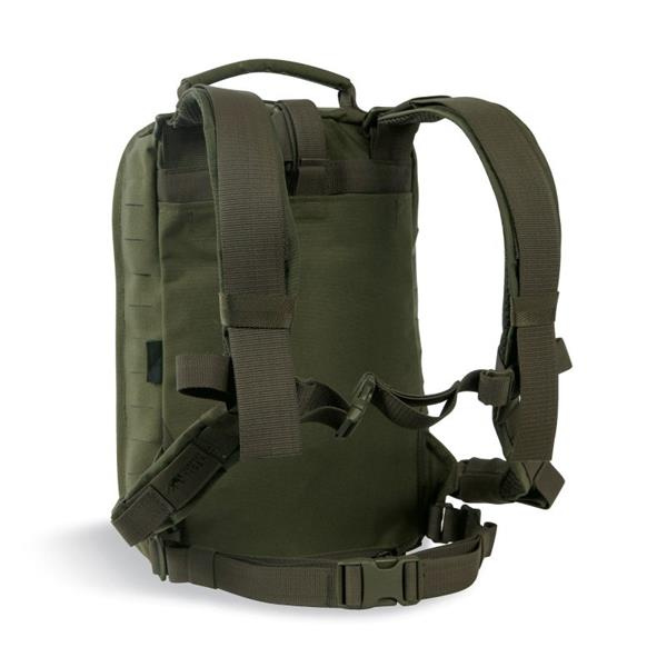 Mały płaski plecak medyczny z inteligentnym, przejrzyście rozplanowanym wnętrzem. System MOLLE z przodu i po bokach jest wycinany laserowo. Paski naramienne można odpiąć i przechowywać w zapinanym na rzep pokrowcu z tyłu. Plecak posiada pasy, dzięki czemu można go dopasować do kamizelki lub kamizelki. Specjalnie zaprojektowany do stosowania w systemach nośnych płyt.