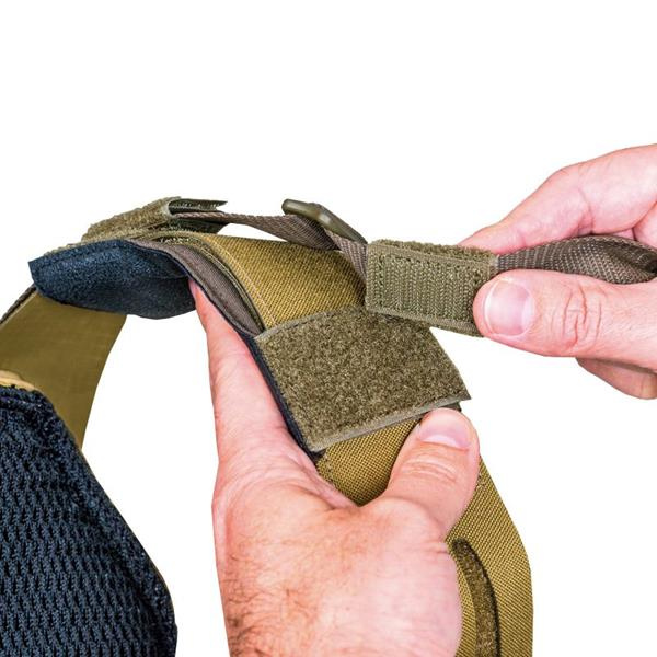 • Regulowane, chowane paski na ramię umożliwiają noszenie dużych kamizelek kuloodpornych