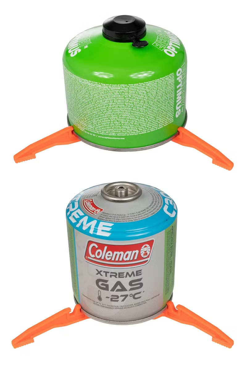 Wykonana z lekkiego tworzywa sztucznego podstawa jest niezwykle lekka i pakowna. Z łatwością można ją schować w naczyniu, z którego korzystamy podczas wyprawy, a nawet zmieści się w większości naczyń turystycznych. Idealnie pasuje do kartuszy o średnicy od 9 do 11 cm, zapewniając wsparcie podczas gotowania w dowolnym miejscu.