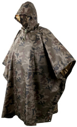 Nieprzemakalna, szybko schnąca peleryna przeciwdeszczowa, wykonana z materiału Rip-stop Poliester. Poncho posiada zatrzaski umożliwiające zrobienie rękawów, lub połączenie dwóch takich samych peleryn razem. Kaptur wyposażony jest w sznurkowy ściągacz. Duża zaleta peleryny to niewielka waga i małe wymiary po złożeniu - pakowane w woreczek o wymiarach 14 x 22 cm.
