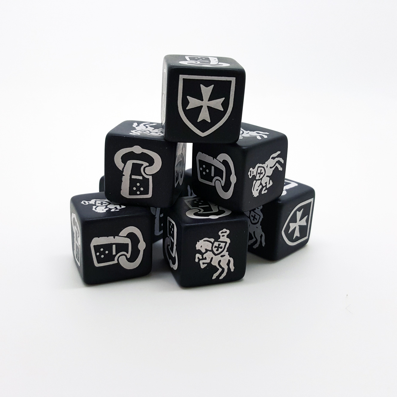 Te wyjątkowe kości zostały stworzone z myślą o graczach, którzy pragną w pełni zanurzyć się w klimacie epoki krucjat, prowadząc potężnych rycerzy zakonu ku chwale i dominacji na polu bitwy.