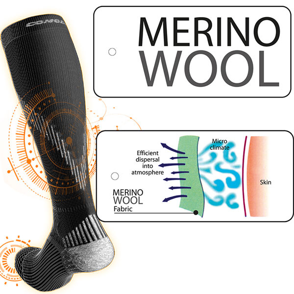 Dzięki Merino i SILTEX AG+ skarpety hamują rozwój bakterii i zachowują świeżość przez długi czas.