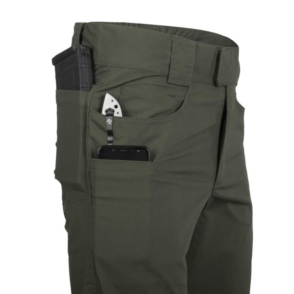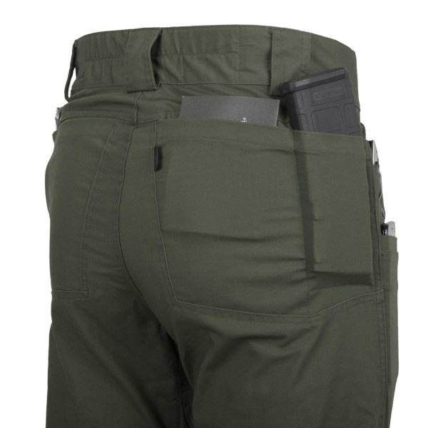 Spodnie Greyman są idealnym połączeniem taktycznych cech z nie rzucającym się w oczy wyglądem zewnętrznym. Dzięki klinowi w kroku spodnie są wytrzymałe i wygodne. Pas jest w części elastyczny i zapinany na rzep, dzięki czemu spodnie można łatwo dopasować. Przez szlufki można przepleść pas o szerokości do 50 milimetrów. Użytkownik ma do dyspozycji dziewięć kieszeni: dwie główne umieszczone w klasyczny sposób z przodu, dwie przednie kieszenie wpuszczane, cztery z tyłu i jedna wkomponowana w prawą przednią kieszeń.