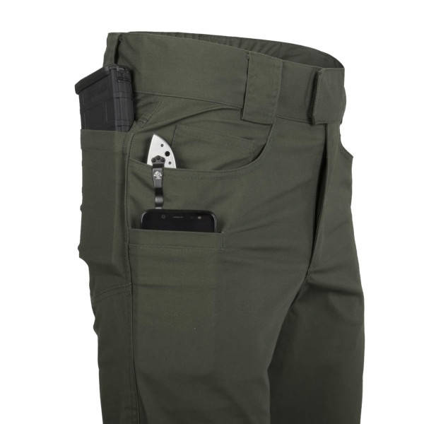 Spodnie Helikon Grayman Tactical Pants to propozycja spodni na co dzień, które jednocześnie są dyskretne i nie rzucają się w oczy, a przy tym zachowują swoją taktyczną funkcjonalność. Krój wykonany z lekkiego i gładkiego materiału Duracanvas, został znacznie uproszczony, ale szereg rozwiązań odpowiednią wygodę oraz wytrzymałość. Pas jest w części elastyczny i zapinany na rzep, dzięki czemu spodnie można łatwo dopasować. Przez szlufki można przeprowadzić szeroki nawet na 50 milimetrów. Użytkownik ma do dyspozycji dziewięć kieszeni: dwie główne umieszczone w klasyczny sposób z przodu, dwie przednie kieszenie wpuszczane, cztery z tyłu i jedna wkomponowana w prawą przednią kieszeń. Spodnie Helikon Greyman dzięki uniwersalnej kolorystyce można zestawić zarówno z koszulą w kratę jak i sportową bluzą z kapturem. |