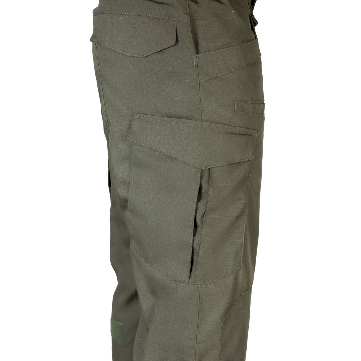 Tkanina wykonana w technologii ripstop (60% bawełna, 40% poliester) zapewnia wysoką odporność na przetarcia i rozdarcia. Dzięki temu spodnie sprawdzą się nawet podczas intensywnego użytkowania w wymagającym terenie.