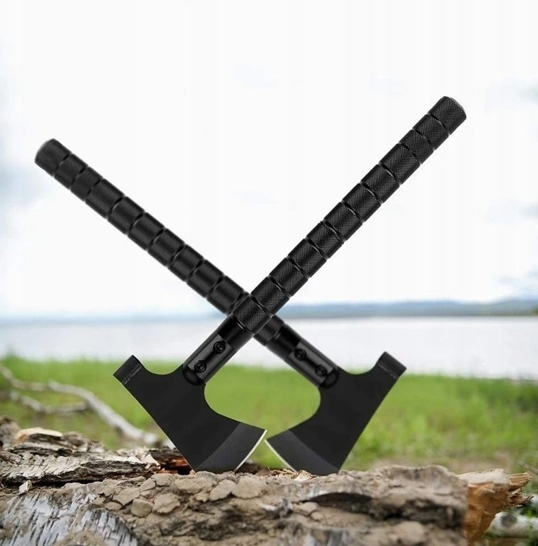 Wytrzymała rękojeść z aluminium: Rękojeść toporka została wykonana z wyjątkowo wytrzymałego stopu aluminium, co zapewnia solidność i niezawodność. Składa się z dwóch skręcanych elementów, umożliwiających dopasowanie długości uchwytu do aktualnych potrzeb. Specjalne nacięcia na rękojeści zapewniają pewny i stabilny chwyt.
