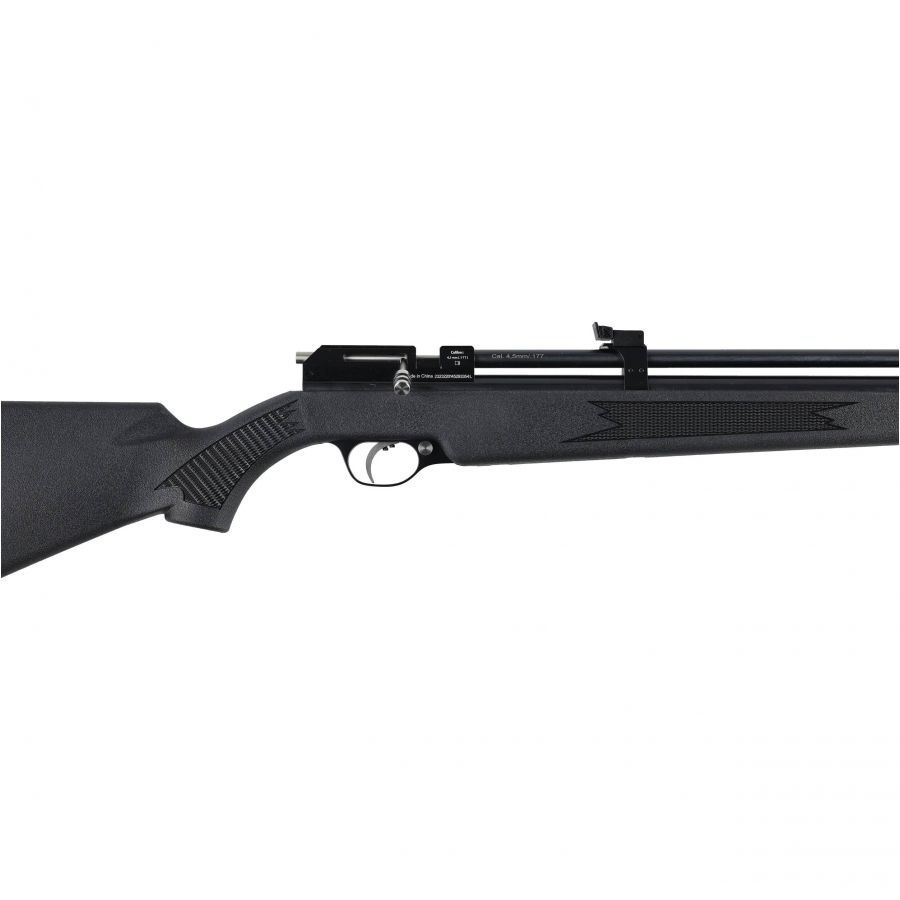 Wiatrówka posiada bruzdowaną lufę o długości 480 mm, co znacząco zwiększa celność. Regulowany mechanizm spustowy z obciążeniem ~1,3 kg oraz manualny bezpiecznik zapewniają kontrolę i bezpieczeństwo.
