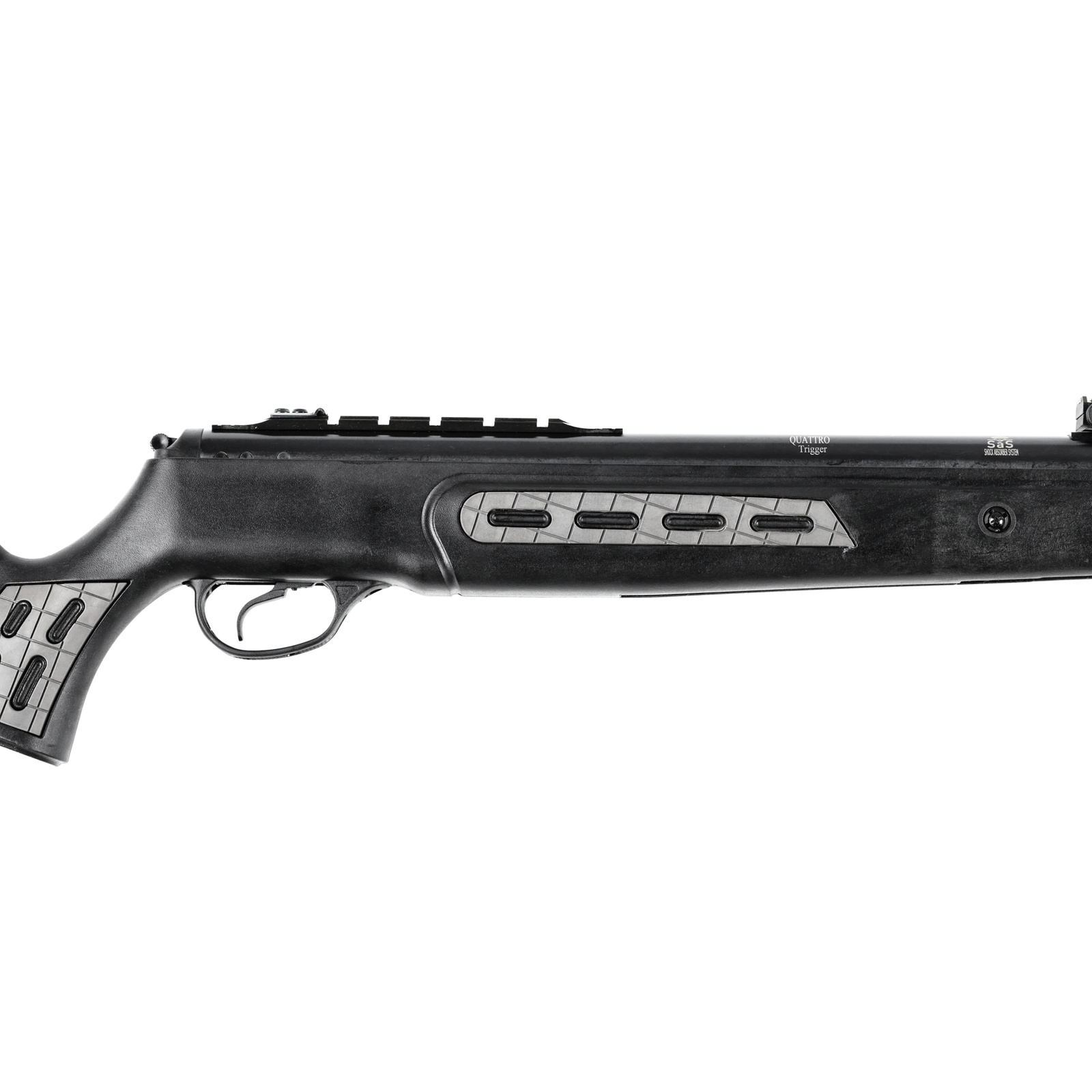 SAS™ - system absorpcji wstrząsów to nowość w karabinkach Hatsan. System ten wymyślony i opatentowany przez firmę Hatsan ma za zadanie pochłonięcie części energii jaka tworzy się podczas wystrzału w karabinku sprężynowym. Dzięki SAS™ udało się wydłużyć trwałość samych karabinków, zmniejszyć zmęczenie materiału oraz zniwelować niekorzystne oddziaływanie na optykę.