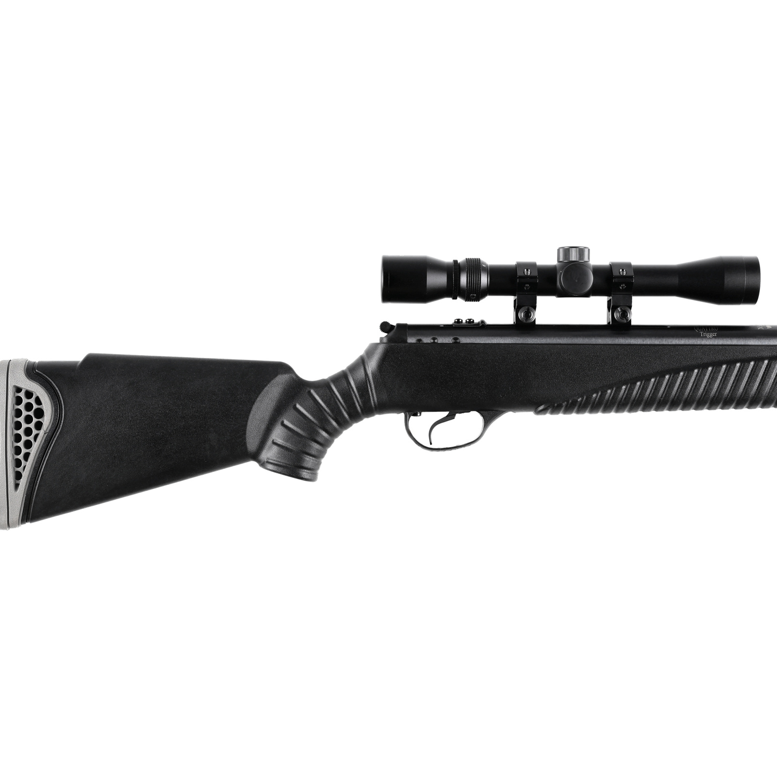 Optima by Hatsan 85X 5,5 mm to klasyczny karabinek sprężynowy z łamaną lufą, stworzony z myślą o rekreacyjnym strzelaniu na średnie i dłuższe dystanse. W zestawie otrzymujesz aluminiowy tłumik dźwięku oraz lunetę Optima 3-9×32, które zwiększają precyzję oraz komfort użytkowania.