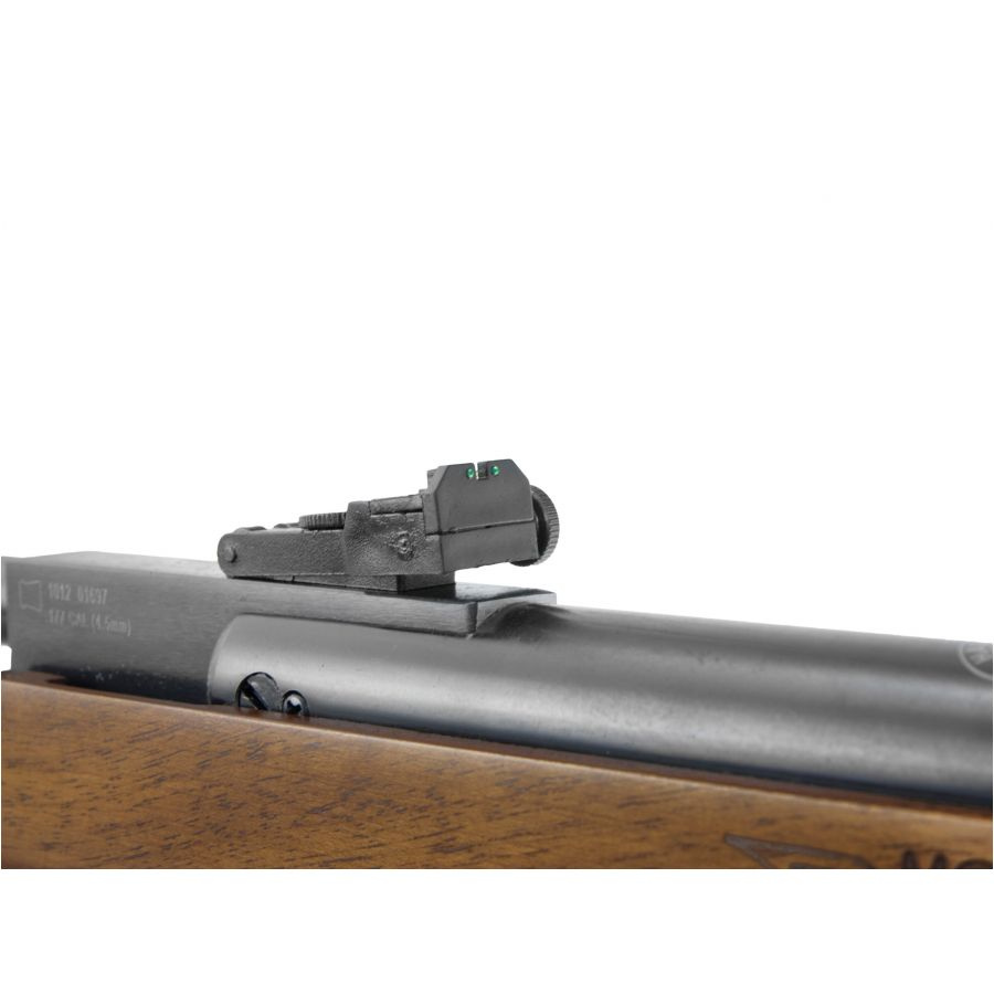 Karabinek został wyposażony w dobrej klasy światłowodowe przyrządy celownicze tj. stałą muszkę oraz regulowaną w pionie i poziomie szczerbinkę. Światłowody pręciki o kontrastowej (zielono-czerwonej) kolorystyce, dzięki wysokiej absorpcji światła, znacznie przyspieszają zgrywanie muszki i szczerbinki. Jeśli chcemy spróbować swoich sił w strzelaniu na większym dystansie, na szynie 11/22 mm możemy również zamontować wybrany celownik optyczny. Szyna ma otwory na kołek stopujący, eliminujący problem związany z „utratą zera”.