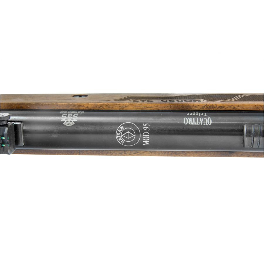 Optima by Hatsan 95 STG Vortex 5,5 mm to jeden z najbardziej popularnych karabinków sprężynowych na rynku, w którym zastosowano elegancką osadę z drewna orzechowego, sprężynę gazową Vortex, regulowany mechanizm spustowy Quattro oraz system redukcji odrzutu SAS.