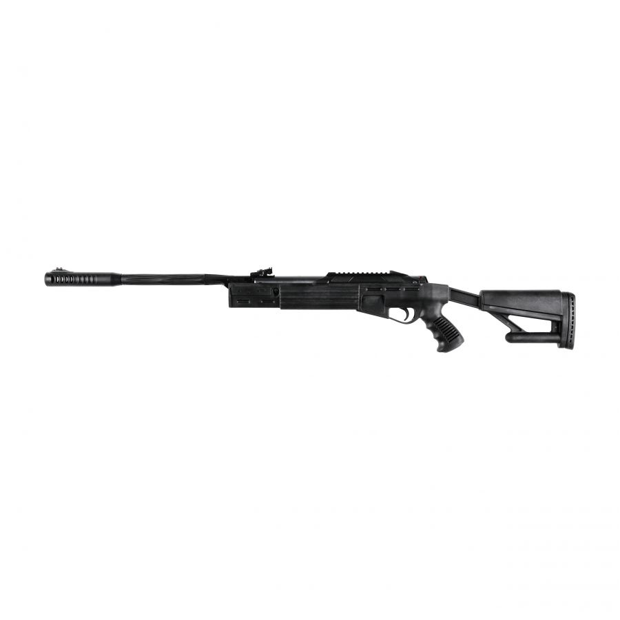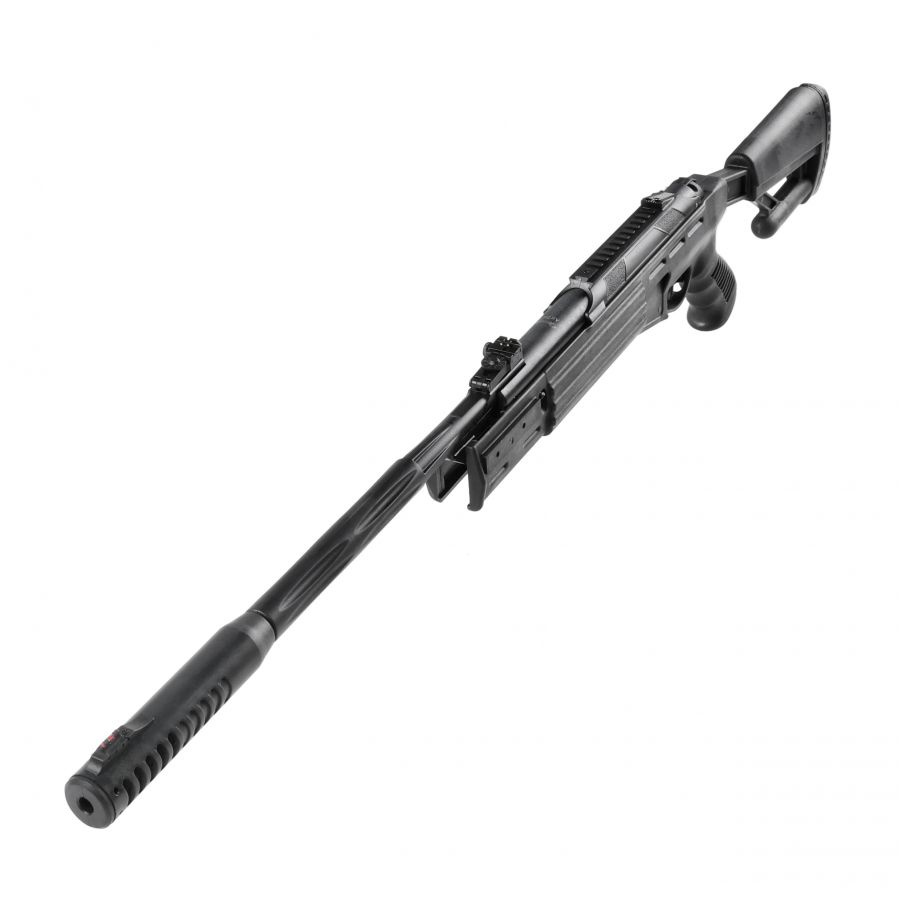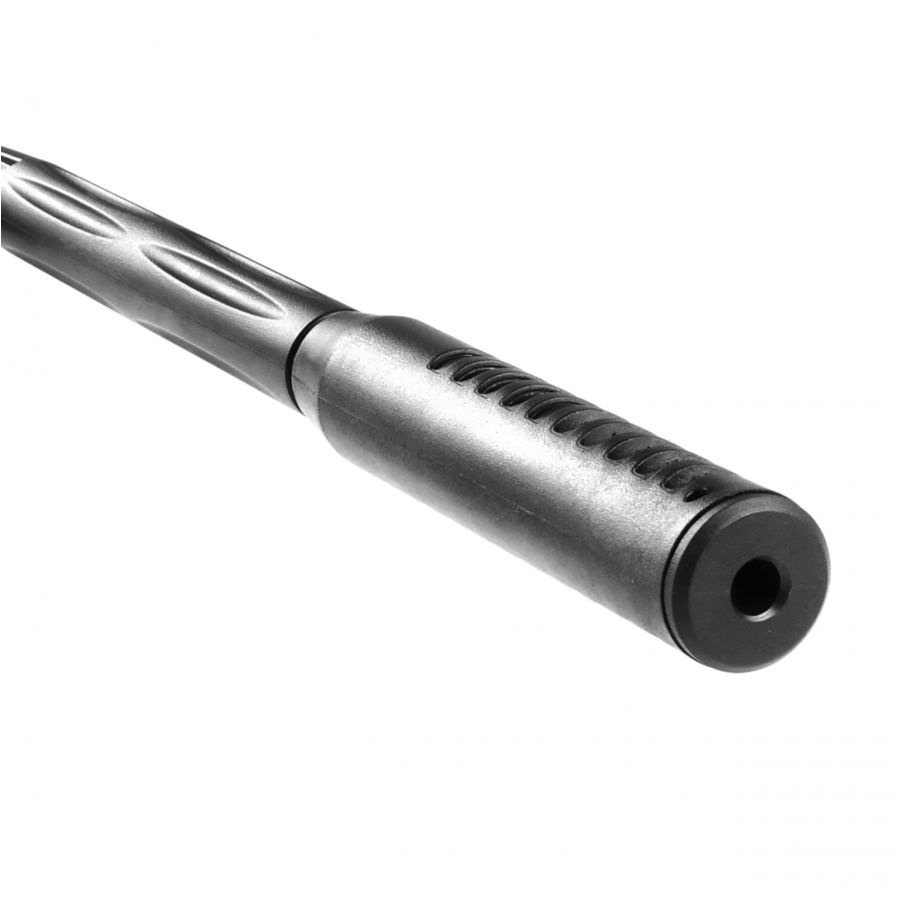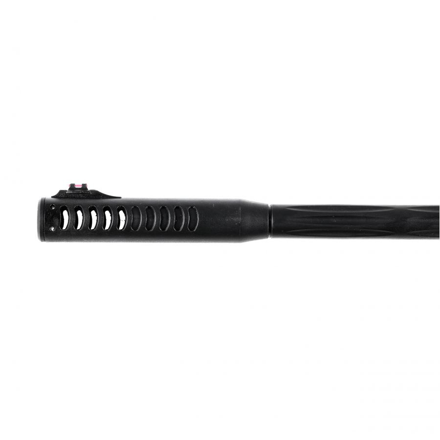 W wiatrówce zastosowano precyzyjnie gwintowaną lufę o długości 370 mm, zakończoną zintegrowanym tłumikiem dźwięku, który skutecznie redukuje hałas strzału bez wpływu na parametry balistyczne.