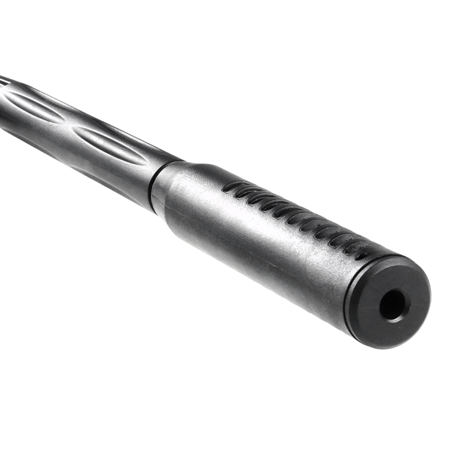 Wiatrówka została wyposażona w gwintowaną lufę o długości 370 mm, zakończoną zintegrowanym tłumikiem dźwięku, który efektywnie redukuje hałas strzału bez pogorszenia parametrów celności. Naciąg sprężyny odbywa się poprzez klasyczne „złamanie lufy” – rozwiązanie cenione za prostotę i niezawodność.