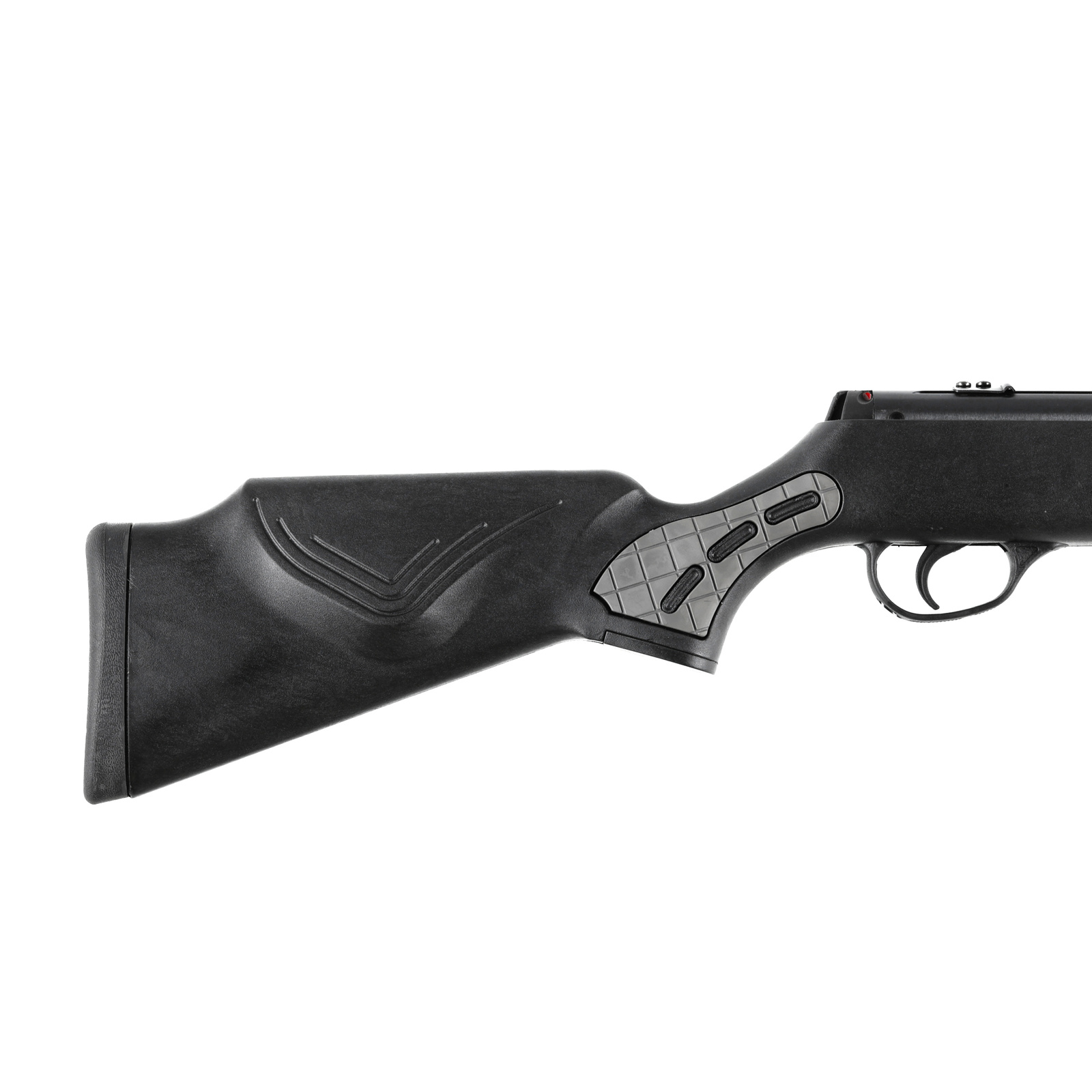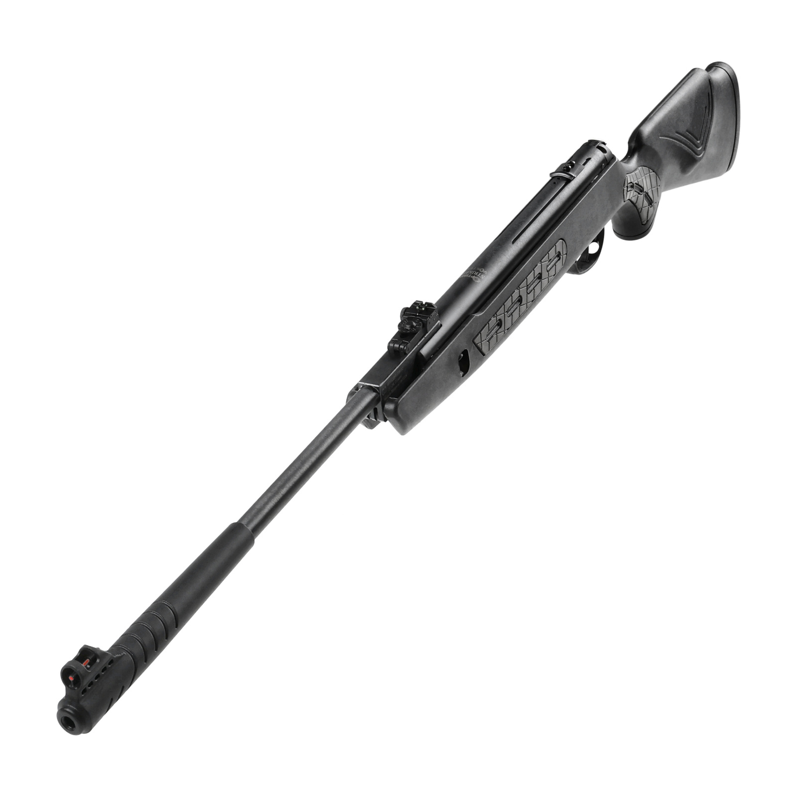 Wystrzelony śrut osiąga wysoką prędkość początkową do 250 m/s (~ 16 J), dzięki czemu z karabinka możemy także celnie strzelać na większych dystansach. Na zakończeniu lufy zamocowano polimerową atrapę tłumika, która pełni rolę podstawy muszki oraz ułatwia łamanie lufy.