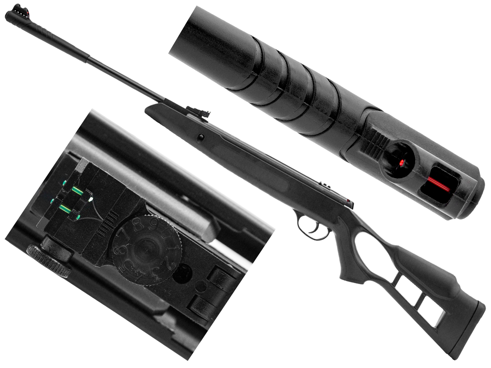 Model Striker Edge 4,5 mm wyposażono w światłowodowe przyrządy celownicze: